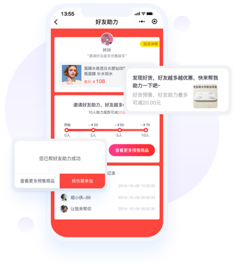 支付定金后,邀请好友获取更多尾款优惠,自发分享不断推广传播,快速拉新引流。