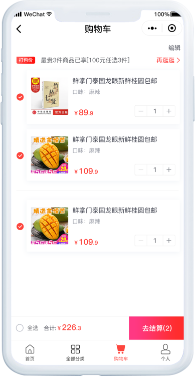 打包一口价为更多商品提供了直接触达用户的机会,促进用户增购,提升客单价。