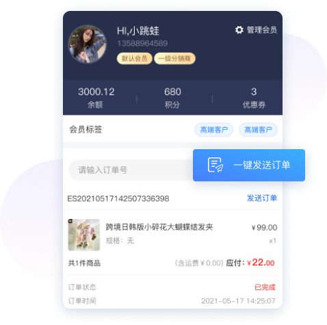 聚客与云SCRM深度结合,会员信息和订单数据全面打通,高效运营私域流量,提升会员转化与复购。